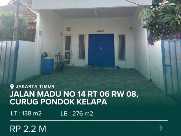 Jalan Madu No 14 RT 06 RW 08, Curug, Kelurahan Pondok Kelapa, Kecamatan Duren Sawit, Jakarta Timur, DKI Jakarta