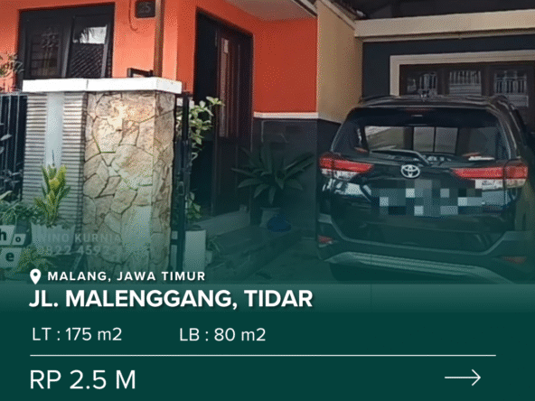 Dijual Rumah Jl. Malenggang, Tidar, Malang, Jawa Timur
