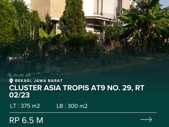Dijual Rumah Cluster Asia Tropis AT9 No. 29, RT 02/23, Kelurahan Pusaka Rakyat, Kecamatan Tarumajaya, Harapan Indah, Bekasi, Jawa Barat