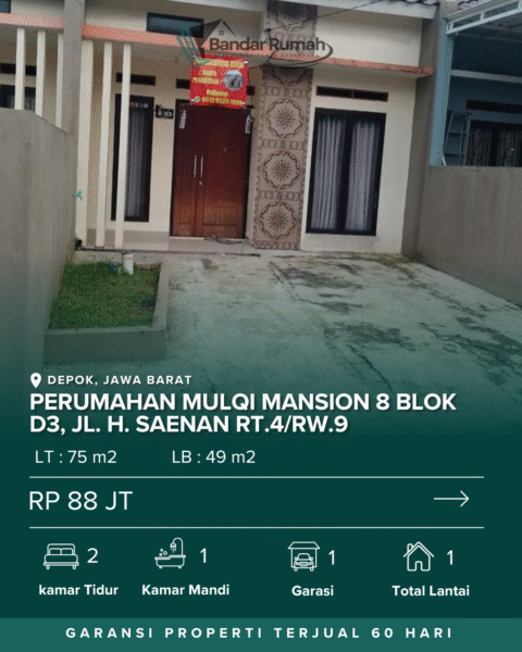 • Alamat Perumahan Mulqi Mansion 8 Blok D3, Jl. H. Saenan RT.4/RW.9, Bedahan, Sawangan, Depok, Jawa Barat